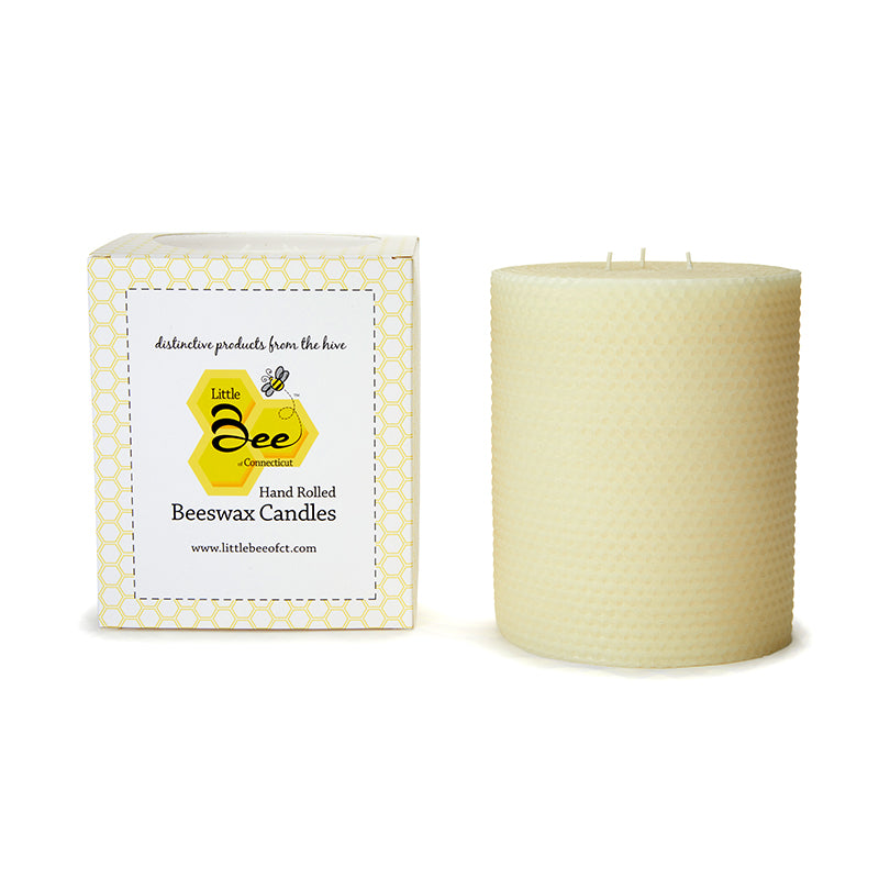 Our Hand Rolled Beeswax Pillars feature a distinctive honeycomb embossed texture. As they burn, the layers of beeswax become translucent creating a soft soothing glow that enhances any space.